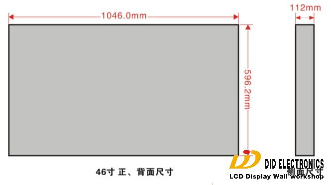 46寸窄邊多樣液晶拼接單元鋁殼設(shè)計(jì),邊框9mm,雙邊拼縫18mm。